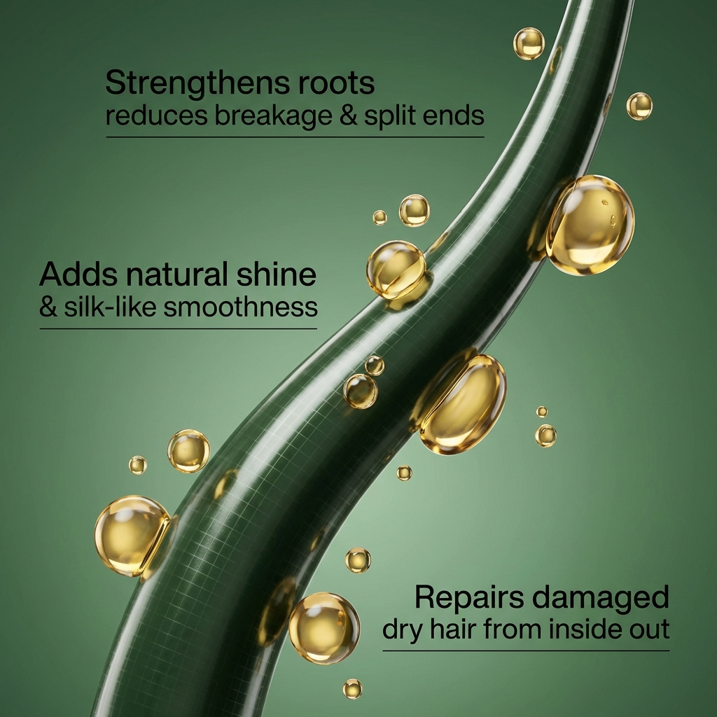 Keratin peptides penetrate deeply to reinforce the hair shaft, reducing breakage and helping your hair grow longer without snapping.