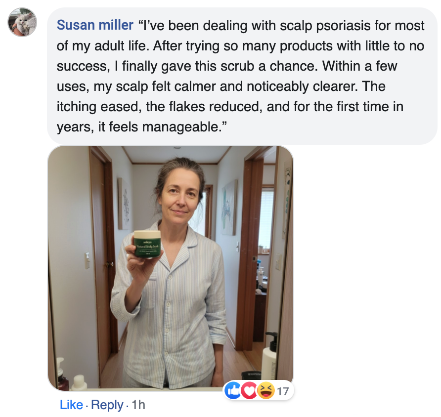 “This scrub is the only thing that has truly relieved my scalp psoriasis.” – Claire F.