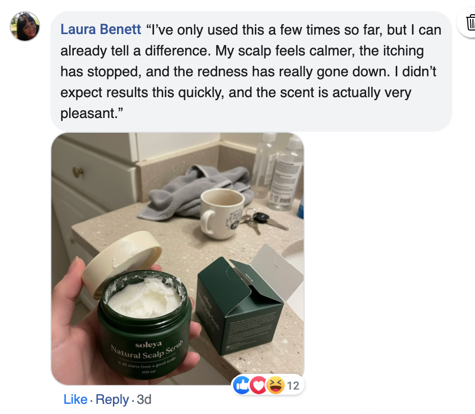 “After just 3 uses, my scalp already feels calm and no longer itchy.”